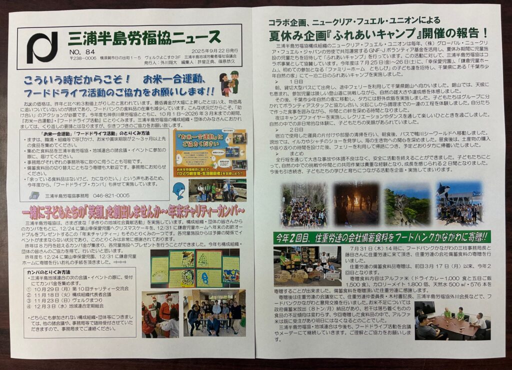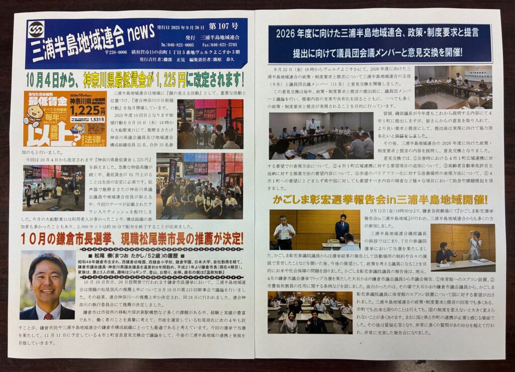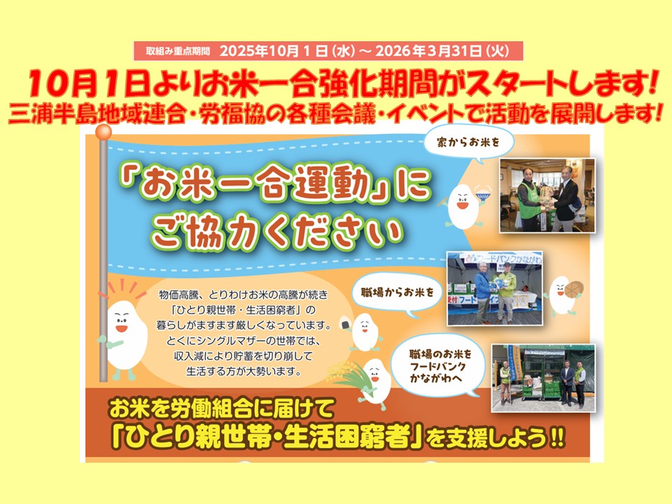 お米一合強化月間などを掲載しました。三浦半島労福協