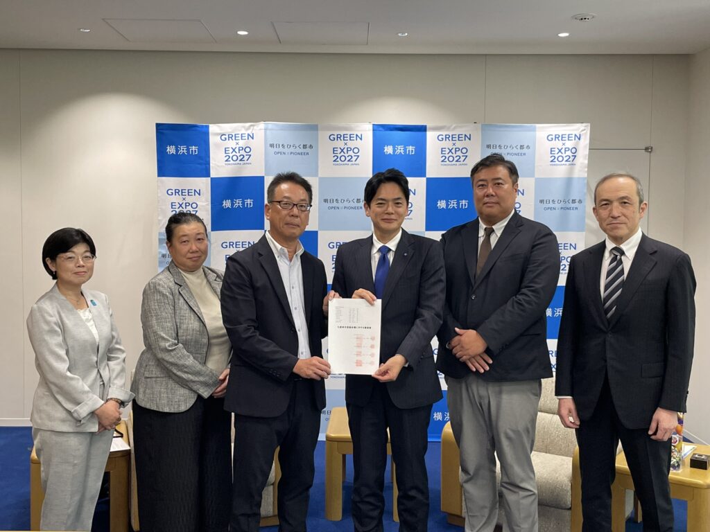 10月17日(金)横浜市庁舎 市長応接室において、連合埼玉・千葉・東京・神奈川の共同で、今年度、横浜市の山中市長が座長を努められる「九都県市首脳会議」に対して、広域での対応が求められる課題8項目・20個の政策について要請書を提出し、「働く者の声」の反映をお願いしました。