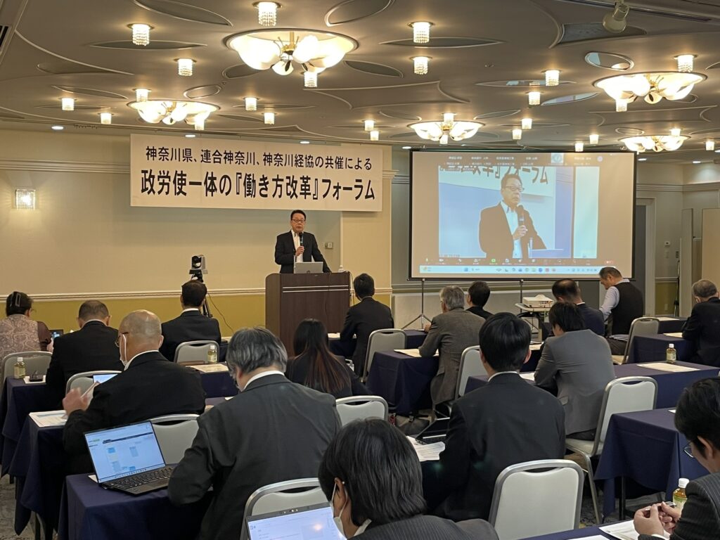 2025年11月17日(月)14:00/ワークピア横浜において、産別・地域連合・内局より29名(全体85名)参加のもと、第8回目となる神奈川県、神奈川県経営者協会、連合神奈川の共催による政労使一体の「働き方改革」フォーラムを開催しました。