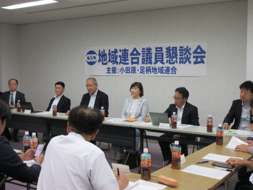 参加いただいた組織内議員をはじめ連合議員団および友好議員の6名より、近況の活動報告と合わせて小田原市や大井町の現状と課題について報告があり、議員の皆様が話された内容をもとに、具体的な中身について質疑・応答を十分行いました。友好議員の皆様や地域連合五役との交流・親睦をはかることができました。