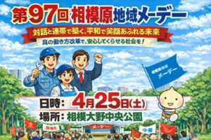 相模原地域連合は、橋本駅南口にて「マイク納め街頭行動」を実施しました。 これまで地域で積み重ねてきた取り組みを振り返りながら、働く仲間の声を改めて社会に届けていく機会となりました。 街頭では、物価高が暮らしや家計に与えて […]