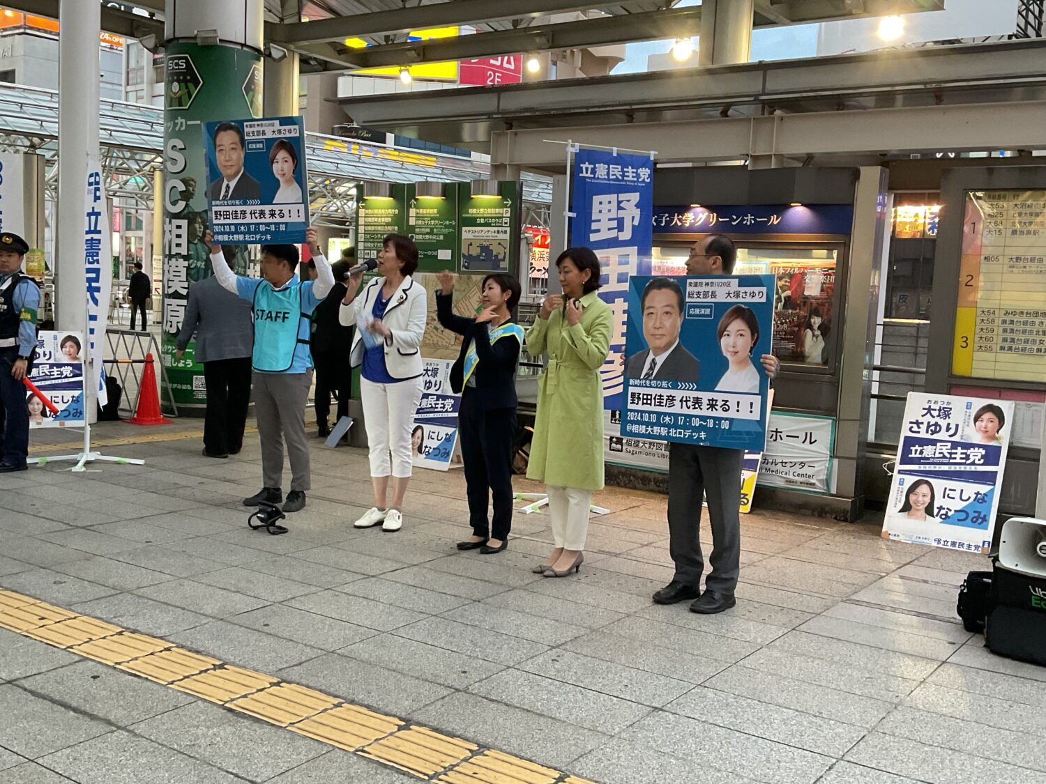 大塚さゆり街頭行動@相模大野 2024年10月10日 最終更新日時 : 2025年10月27日 相模原地域連合 2024年10月10日相模大野駅にて大塚さゆり氏の街頭演説が行われました。 立憲民主党代表野田佳彦氏からも熱い応援演説が行われました。