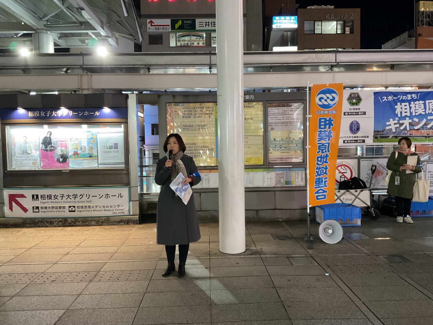 12月9日相模大野駅にて連合神奈川の日 街頭行動を実施しました。12月のテーマは「フリホケ」フリーランスのための労災保険の特別加入として、連合フリーランス労災保険センターの案内を相模原地域連合の仲間16名でマイクスピーチと啓発チラシを配布して街頭運動を実施しました。