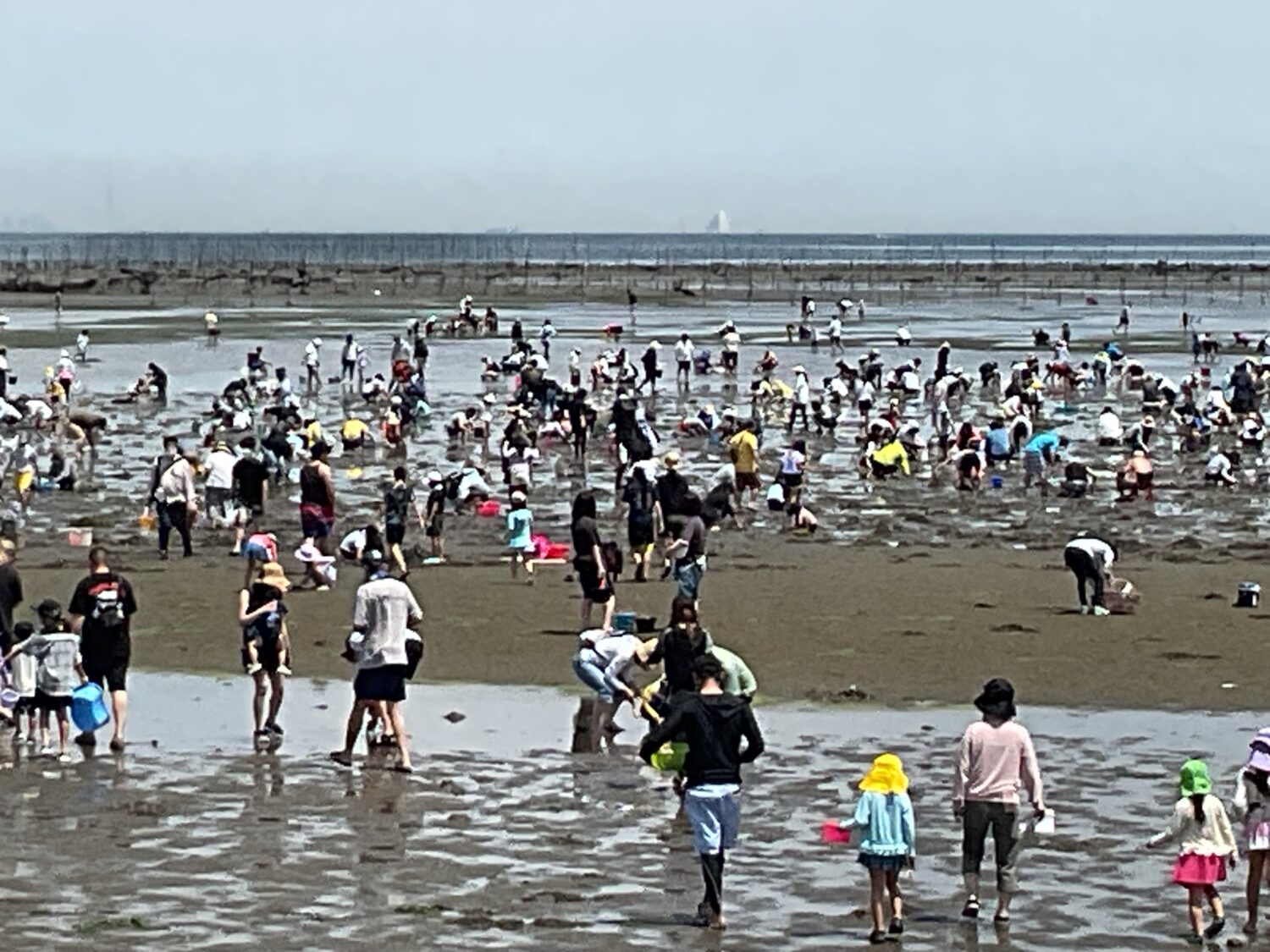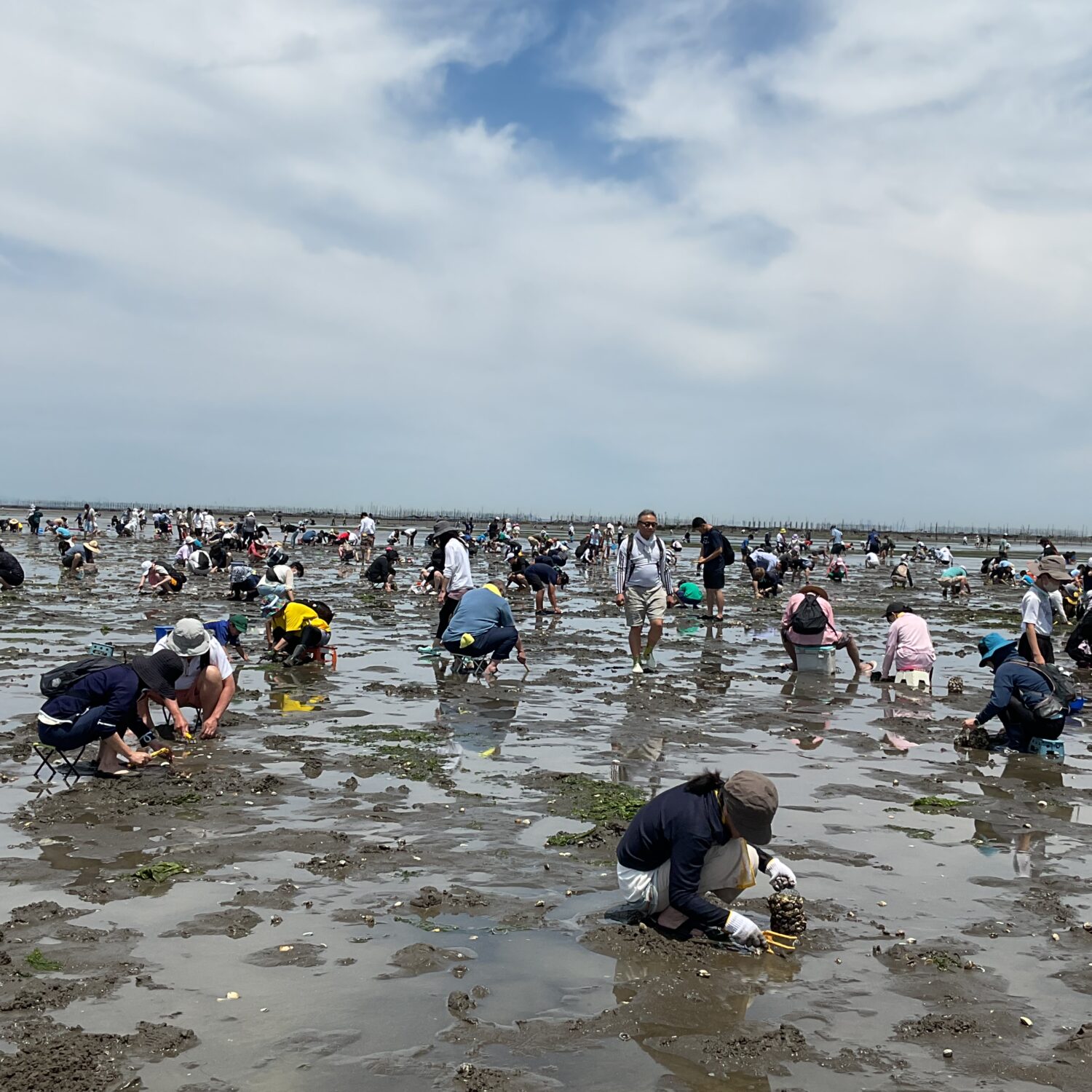 青い海と涼しい海風が迎えてくれ、まさに潮干狩り日和!132名もの方に参加いただきました。海の中に足を踏み入れると、さっそく貝が姿を表しました。参加者は夢中で掘り進め、まるで宝探しのようなひととき。子供たちの笑顔、貝を見つけて歓声をあげる姿はこのイベントのハイライトでした。沢山のアサリやはまぐりなど袋いっぱい取れました。