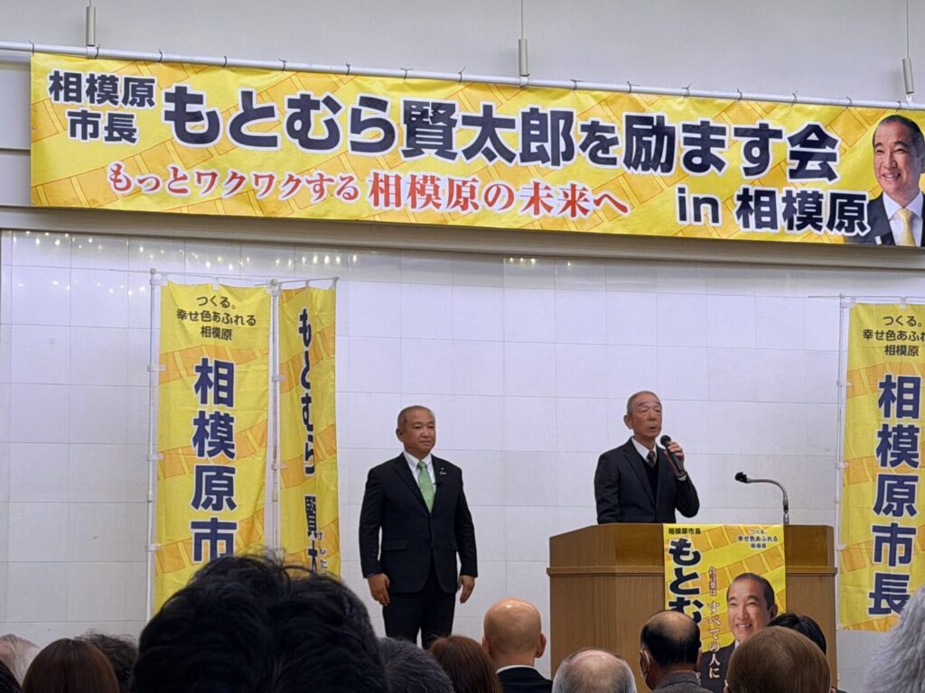 2025年12月16日「もとむら賢太郎を励ます会」に参加しました。本イベントでは、2025~2026年に向けた相模原市の将来ビジョンや重点施策について本村相模原市長よりお話されました。本村市長からは、「相模原から日本を変える」を掲げ、子どもから高齢者まで、誰もが安心して暮らし、働き、学び続けられるまちづくりの方向性が幅広く示されました。