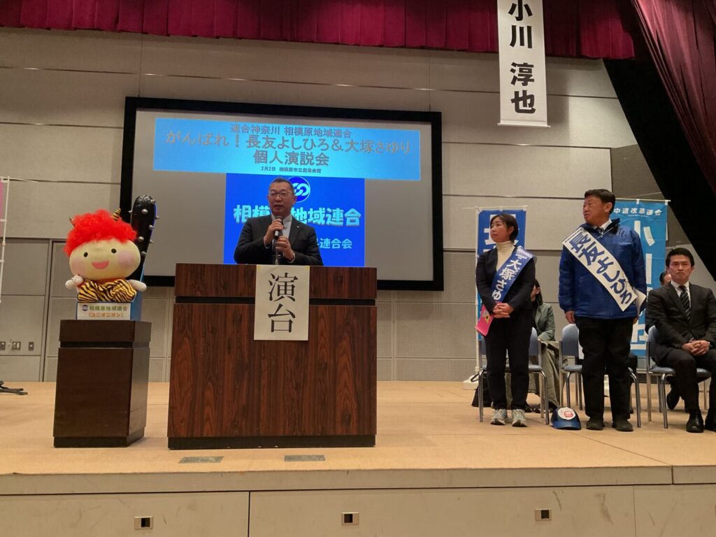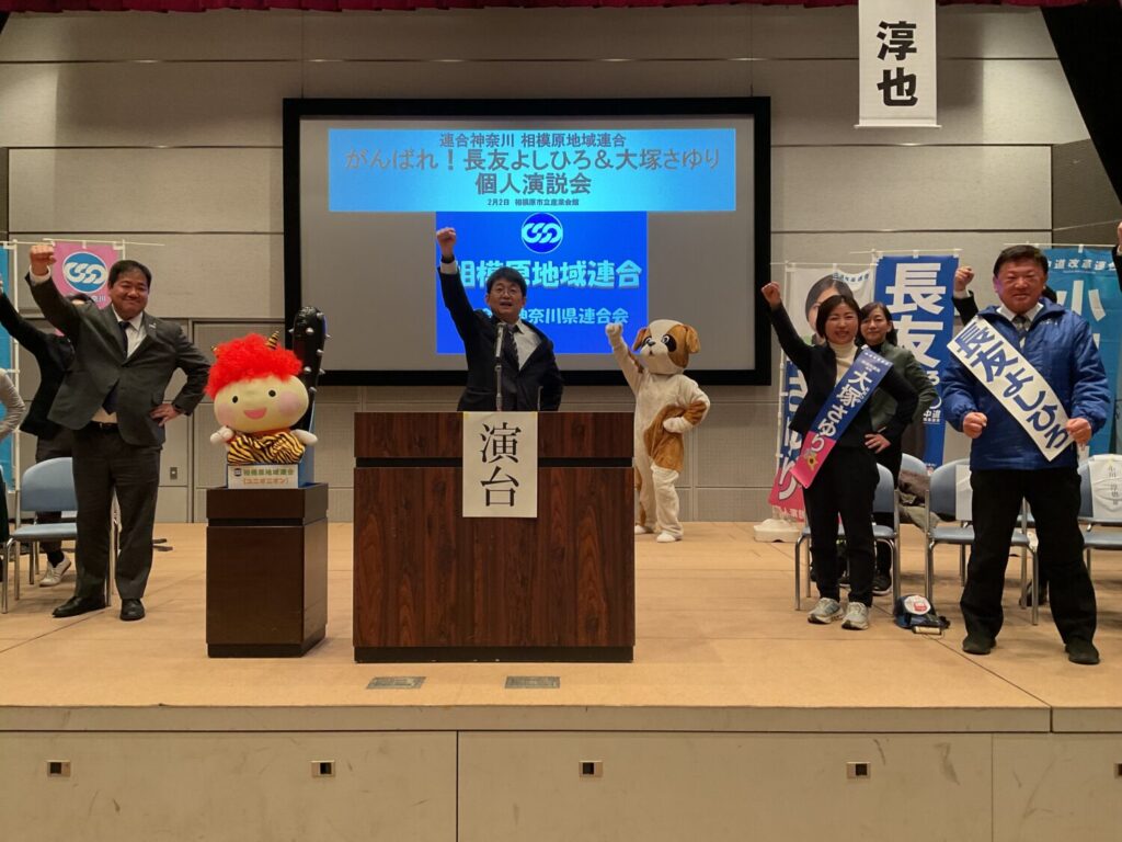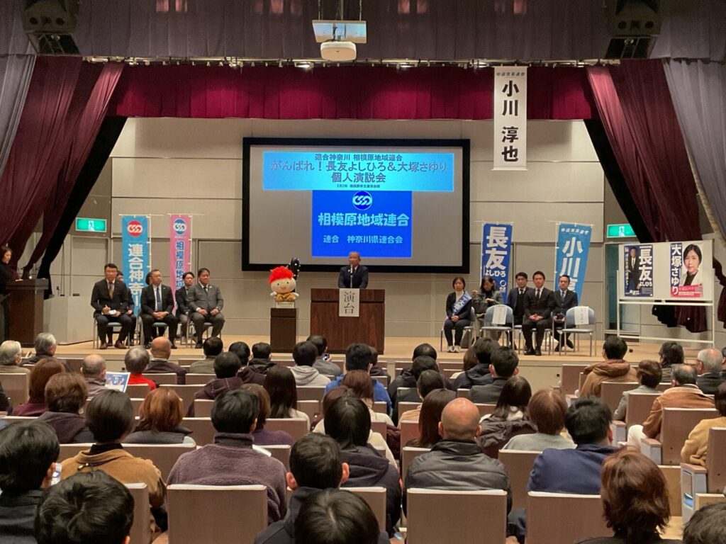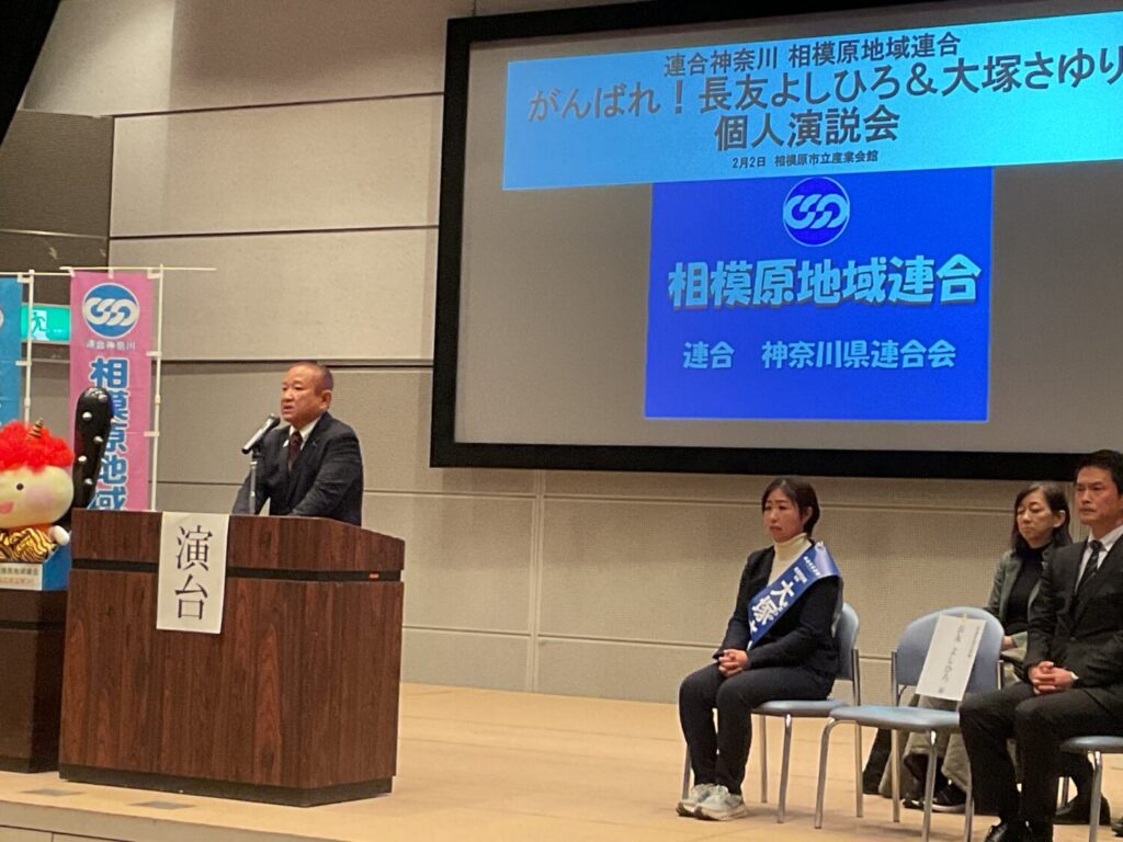 2026年2月2日(月)、相模原市立産業会館1階多目的ホールにて、相模原地域連合主催による個人演説会を開催しました。