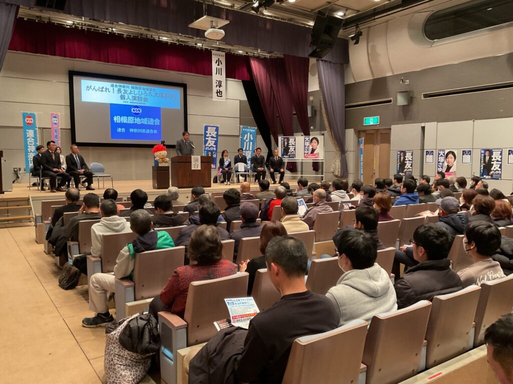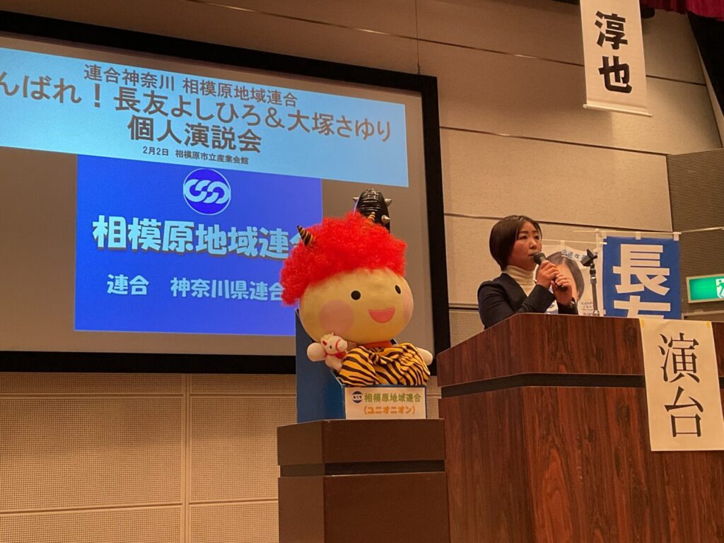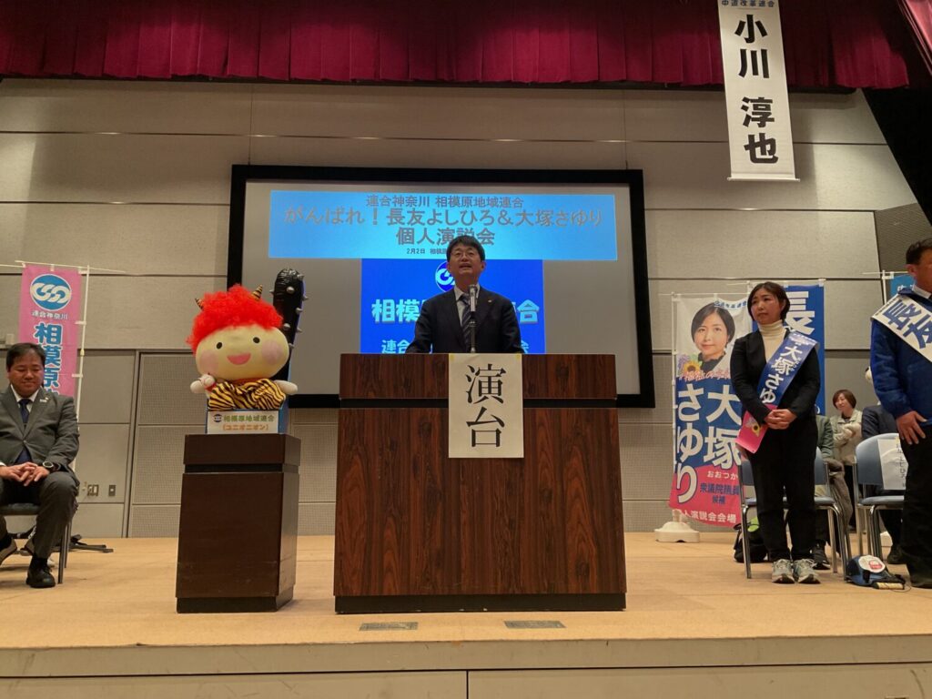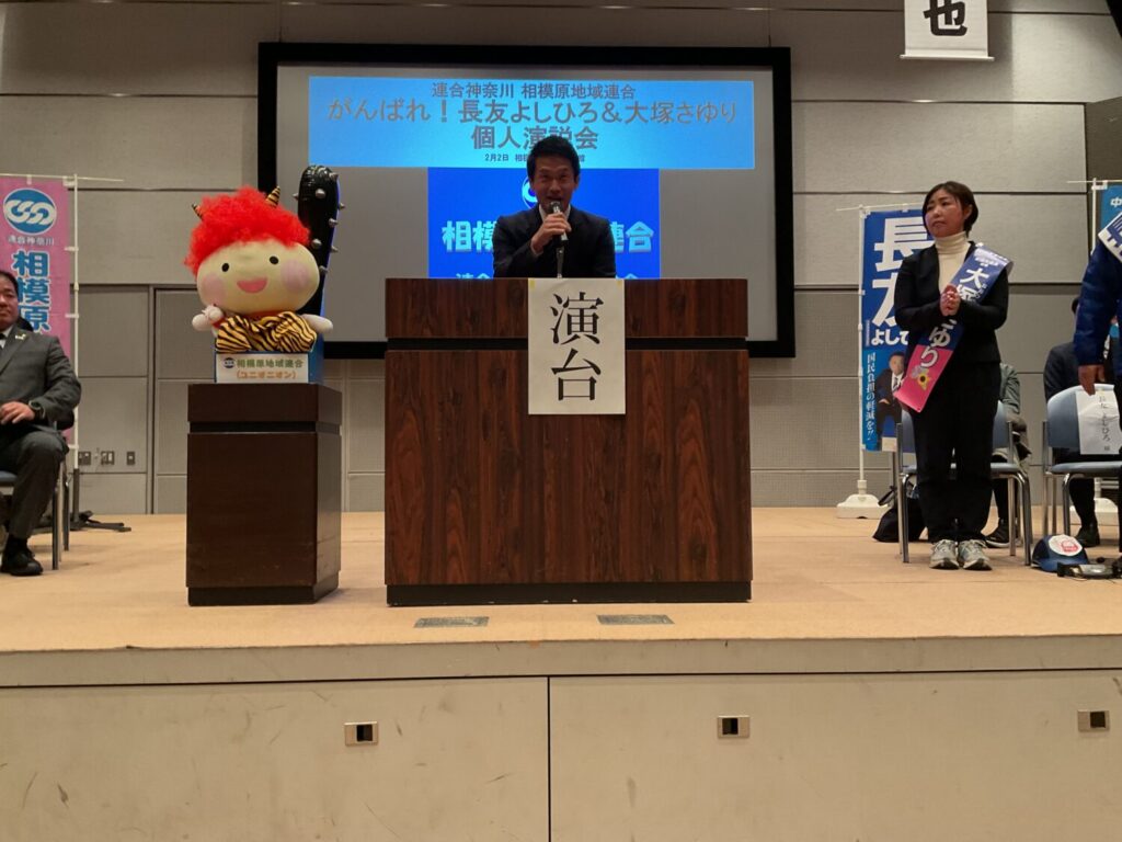 2026年2月2日(月)、相模原市立産業会館1階多目的ホールにて、相模原地域連合主催による個人演説会を開催しました。