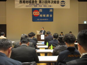 12月12日(金)西湘地域連合第35回総会を開催し、蝦名議長体制がスタートしました。今総会で陸田議長を含め7名の役員が退任し、新たな体制が承認されました。役員選考委員会のお力で、満場の拍手で確認がされました。また、各首長さんからも激励のご挨拶をいただき、心より感謝申し上げます。総会議長をはじめ諸役員のご協力で予定通りの時間で総会を終了することができました。「顔が見える活動」の継続で、すべての方の幸せ実現にむけて取り組んでいきます。