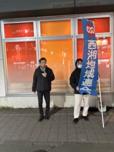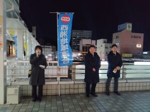 2026年最初の「顔が見える活動」を1月13日(火)に伊勢原駅、秦野駅、平塚駅で実施。風が強く、寒い日の開催になりましたが、労働組合の必要性や役割を推薦議員とともに力強くアピールすることができました。物価上昇が続き、生活は厳しさを増すばかり、西湘地域連合は生活者を中心に活動していきます。山原議員、出村議員、大野議員、八尋議員、安藤議員、ご協力ありがとうございました。
