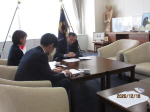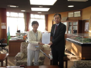 平塚市落合市長に平塚市在住の槻橋副議長から自治体要求書を提出。二宮町村田町長には、新議長に就任してから初めての自治体要求書提出を蝦名議長が行う。提出後は、要求内容の説明と直近の課題について情報交換を行いました。・・・ホームページにアップが出来ていなかったことお詫び申し上げます。